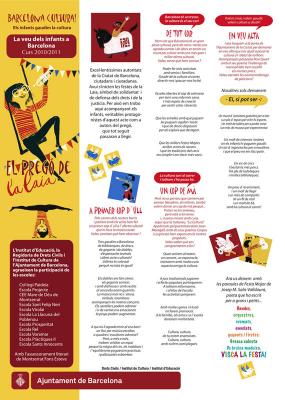 En aquest curs 2010-2011, sota el lema “Barcelona Cultura! Els infants gaudim la cultura”, les propostes del debat han configurat el pregó que ha girat al voltant del gaudiment de la cultura a la ciutat des de la reflexió crítica. La cultura serveix per transformar, construir, difondre i incentivar la creativitat ciutadana. Diferents dinàmiques de grup a l’aula i les trobades entre alumnes de diversos centres, han permès als infants compartir propòsits i interessos com a consumidors i com a productors de cultura. I, des d’una mirada diferent de la dels adults, faran sentir la seva veu sobre la cultura.