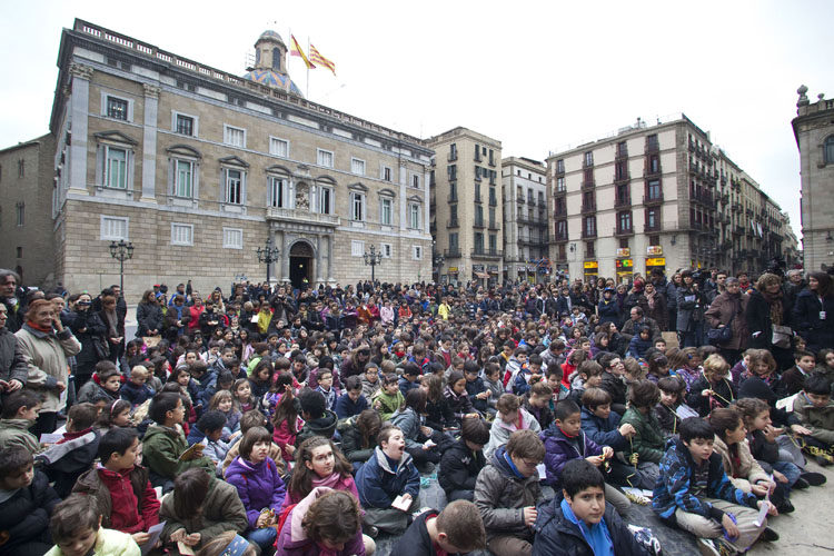 • Trobada amb el Consistori: “La veu dels infants”: A finals del primer trimestre del curs, es realitza una jornada d’intercanvi al Saló del Tinell amb tots els grups participants i el Consistori, on els infants comparteixen les seves propostes treballades a les aules amb altres nens i nenes i les exposen a l’alcalde. Aquest acte es vehicula a través d’un espectacle lúdic amb dinàmiques i tallers de participació col·lectiva,