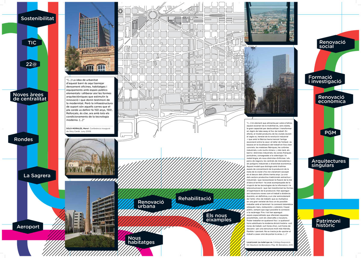 La transformació del Poblenou iniciada ara fa deu anys comença a tenir un perfil definit. Les oficines i els equipaments vinculats amb les noves tecnologies conviuen amb nous parcs, habitatges, escoles i comerços. És el 22@ un bon exemple de reinvenció urbana? Pot esdevenir un model? Quin és el preu que el Poblenou tradicional ––els seus habitants, el comerç local, la vida associativa, el sector productiu–– ha de pagar per facilitar aquesta transformació?
