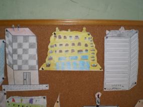 Si veniu a la nostra escola trobareu tota l\'escala engalanada amb els nostres dibuixos dels edificis. D\'aquesta manera, podreu veure l\'evolució de la imatge d\'edifici que té el nostre alumnat.
