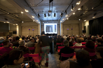 Adjuntem el video amb els treballs, així com diverses fotografies fetes per Miquel Taverna al vestíbul del CCCB durant la projecció.