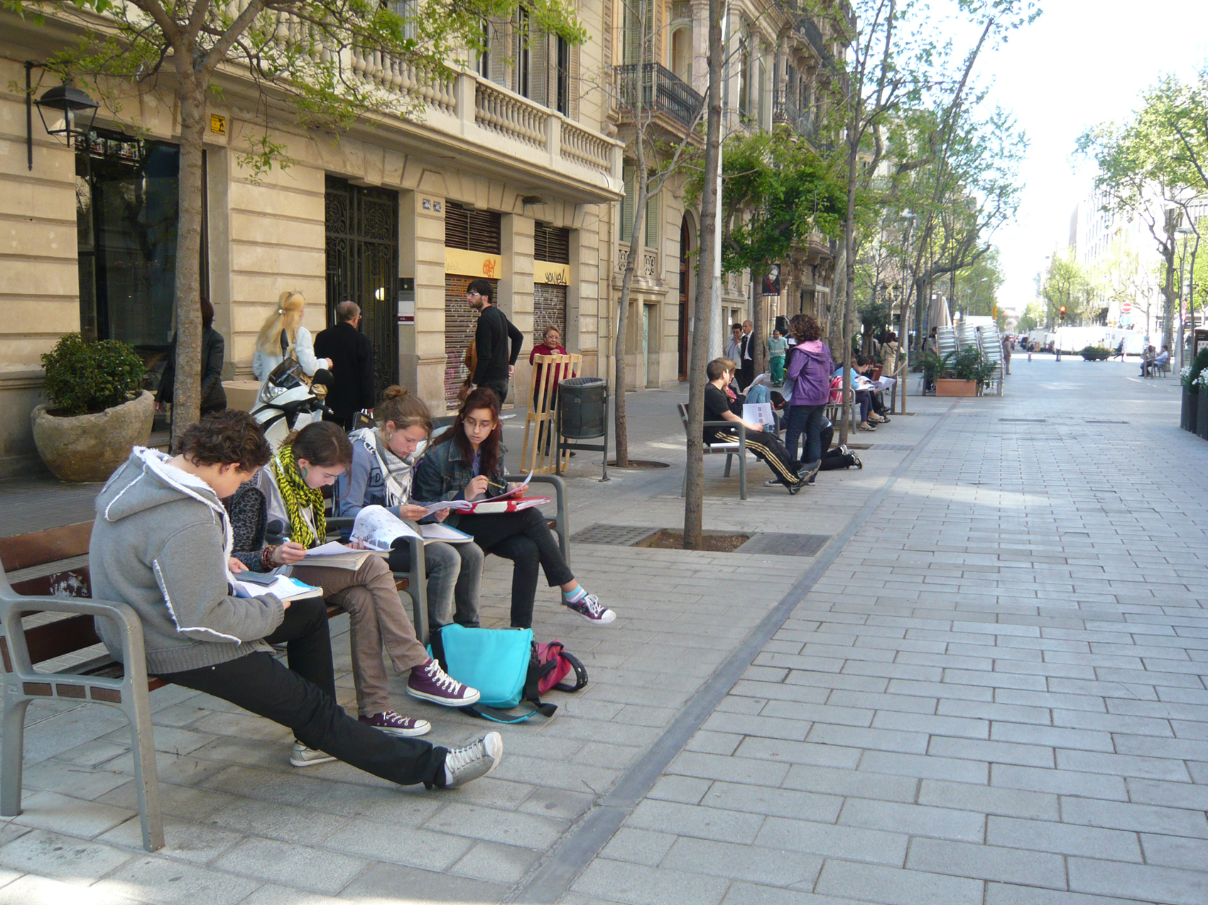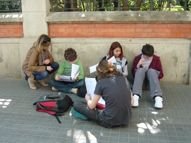 En aquest itinerari els alumnes de 1r d'ESO van fer un repąs a la histņria de l'Eixample aixķ com diferents observacions i mesures (quč és un xamfrą, mesura de les voreres, de l'alēada dels edificis, la numeració dels carrers, els patis interiors, etc) que els van donar un millor coneixement de tot el que va significar el pla Cerdą.
