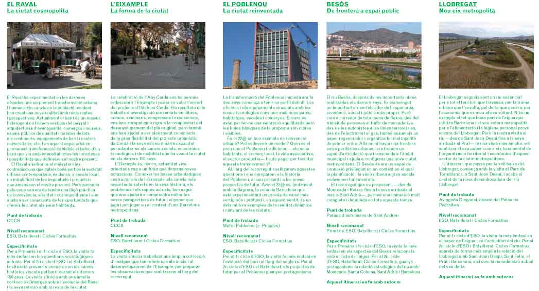 El curs 2010-2011 el CCCB segueix amb el seu programa d'itineraris urbans per escoles. Aquesta és l'oferta completa: