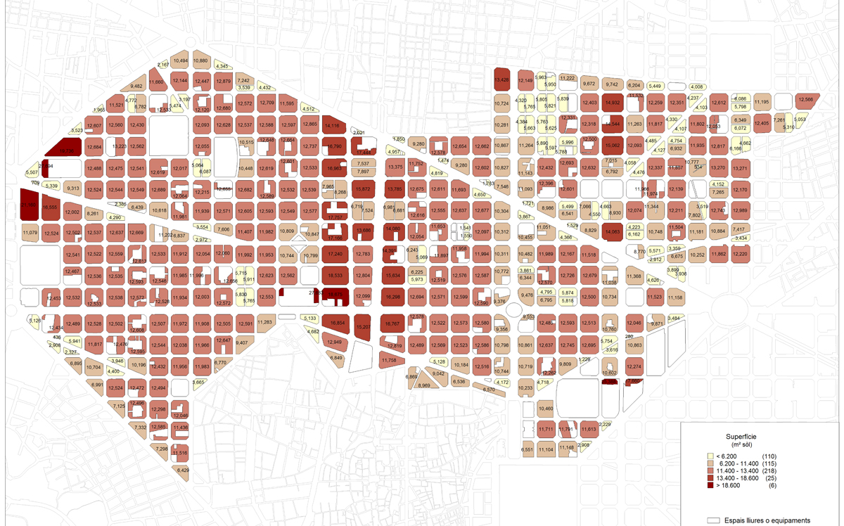 L'Eixample central. Superfície m2 sòl.
