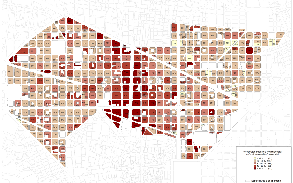 L'Eixample central. Superfície no residencial.