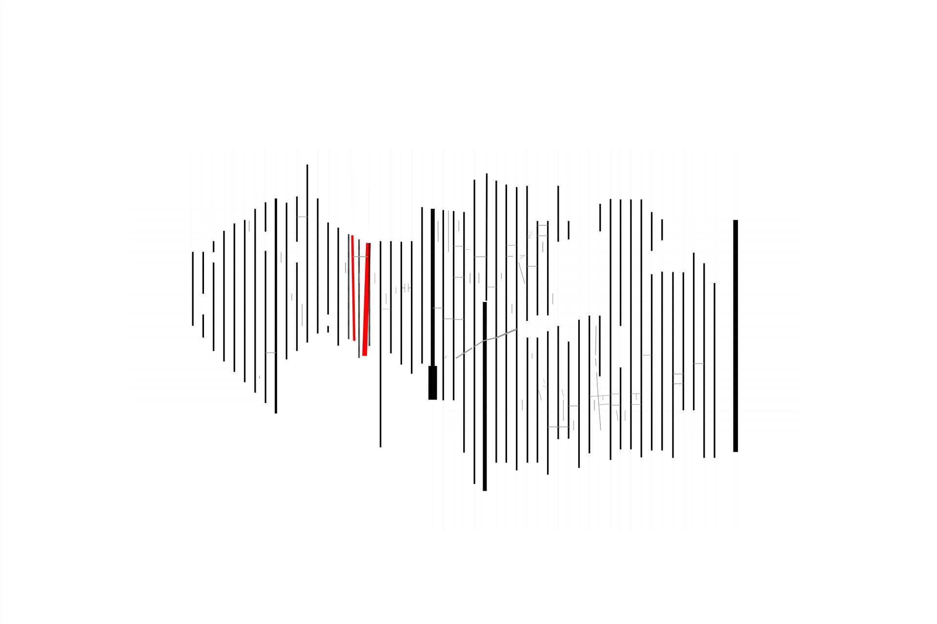 L'ORDRE del traçat. Traçat vertical. Carrers mar-muntanya. Escala 1:4000. Entre els carrers Balmes i Pau Claris hi cabrien quatre fileres de mançanes si la rambla Catalunya i el passeig de Gràcia seguisssin la directriu de la malla.